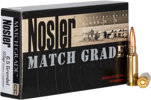 Discover the pinnacle of precision shooting with Nosler 6.5 Grendel ammunition, featuring 20 rounds of 123-grain hollow point boat tail bullets designed for unmatched accuracy and performance.