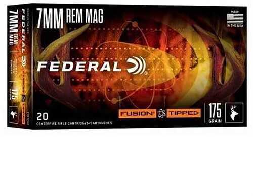 Discover the power and precision of the Federal Fusion 7MM Remington Magnum Rifle Ammo, featuring a 175 Gr Polymer Tipped bullet designed for exceptional performance in the field.