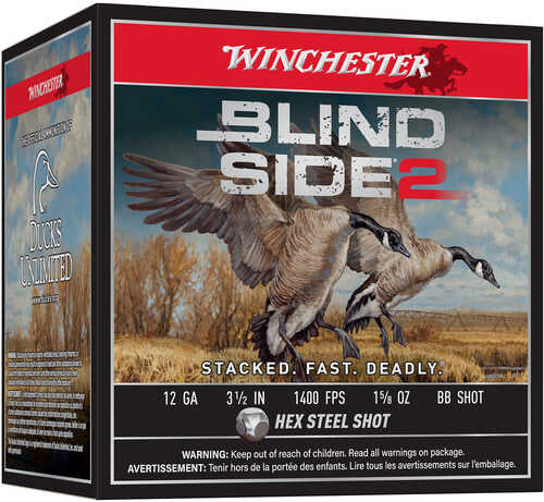 Winchester Blind Side 2 is engineered to deliver superior performance in waterfowl hunting with dependable power, consistency, and corrosion resistance. This 12-gauge shell features a 3.50" length and a deliberate 1 5/8 oz payload designed for clean, ethical take-downs at typical hunting ranges.
